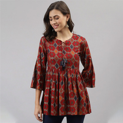 Maroon & Navy Blue Printed Cotton Tunic