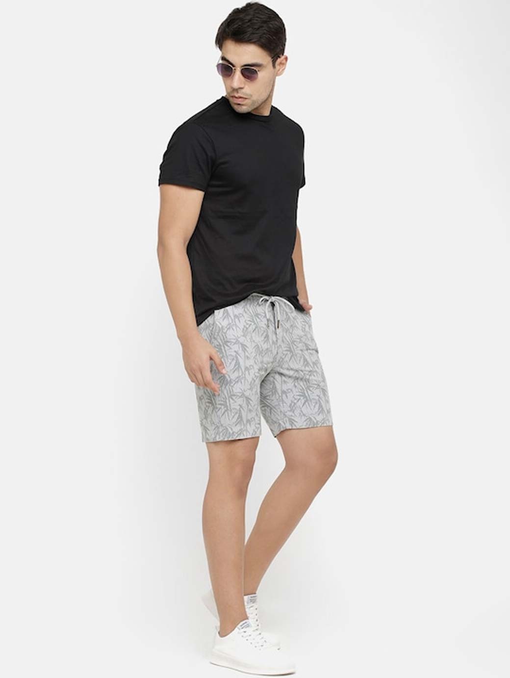 Men Grey Printed Slim Fit Regular Shorts