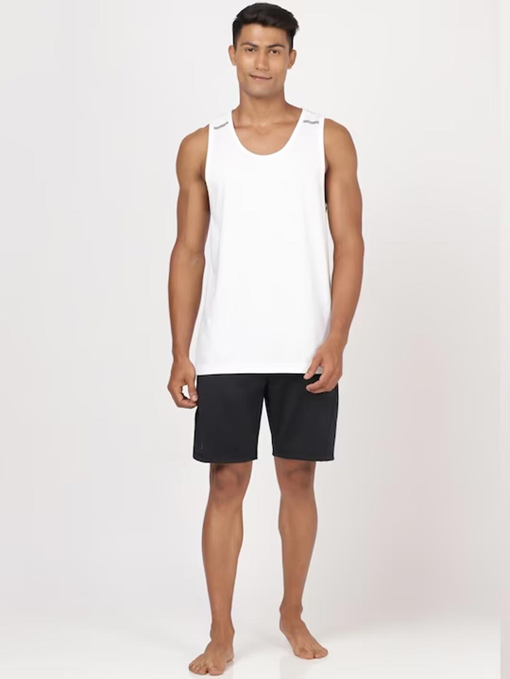 White solid innerwear vests each has a round neck, and sleeveless