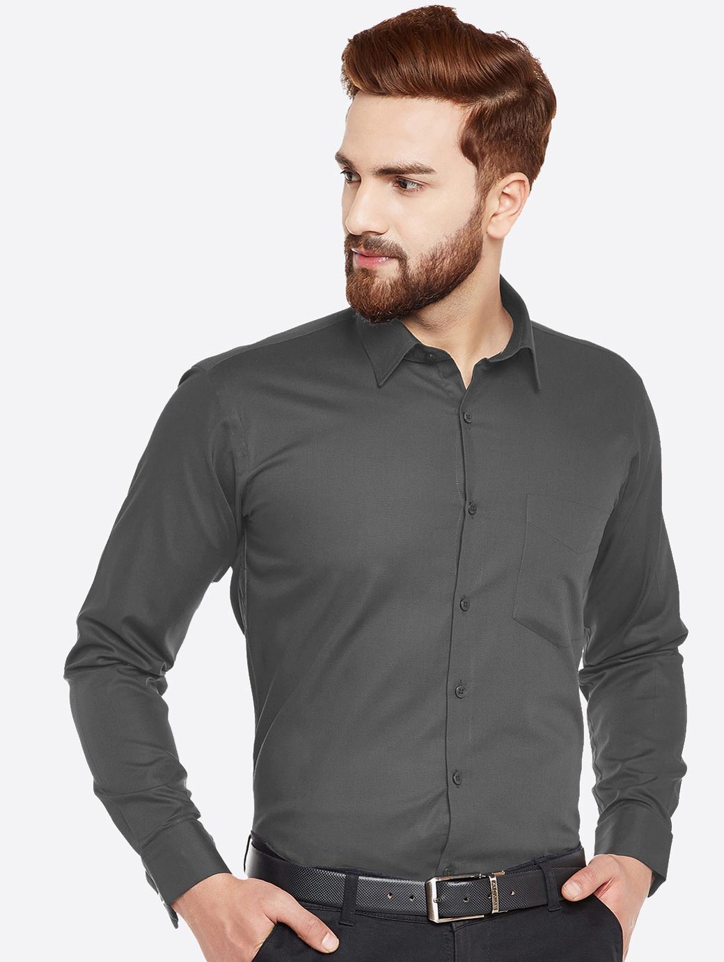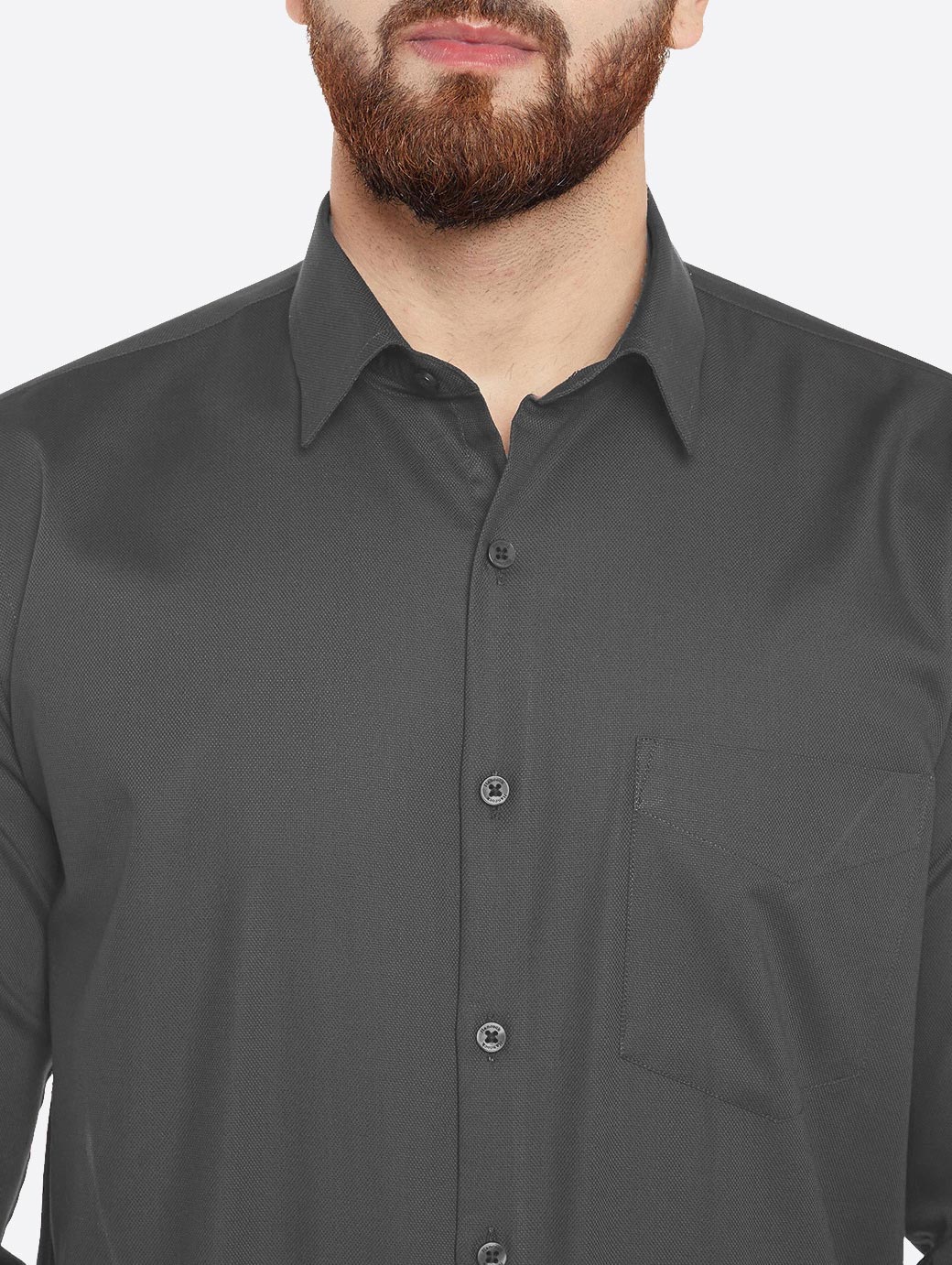 Grey solid formal shirt, has a spread collar, long sleeves, straight hem, one patch pocket, french cuffs