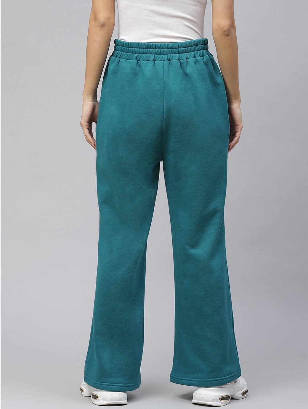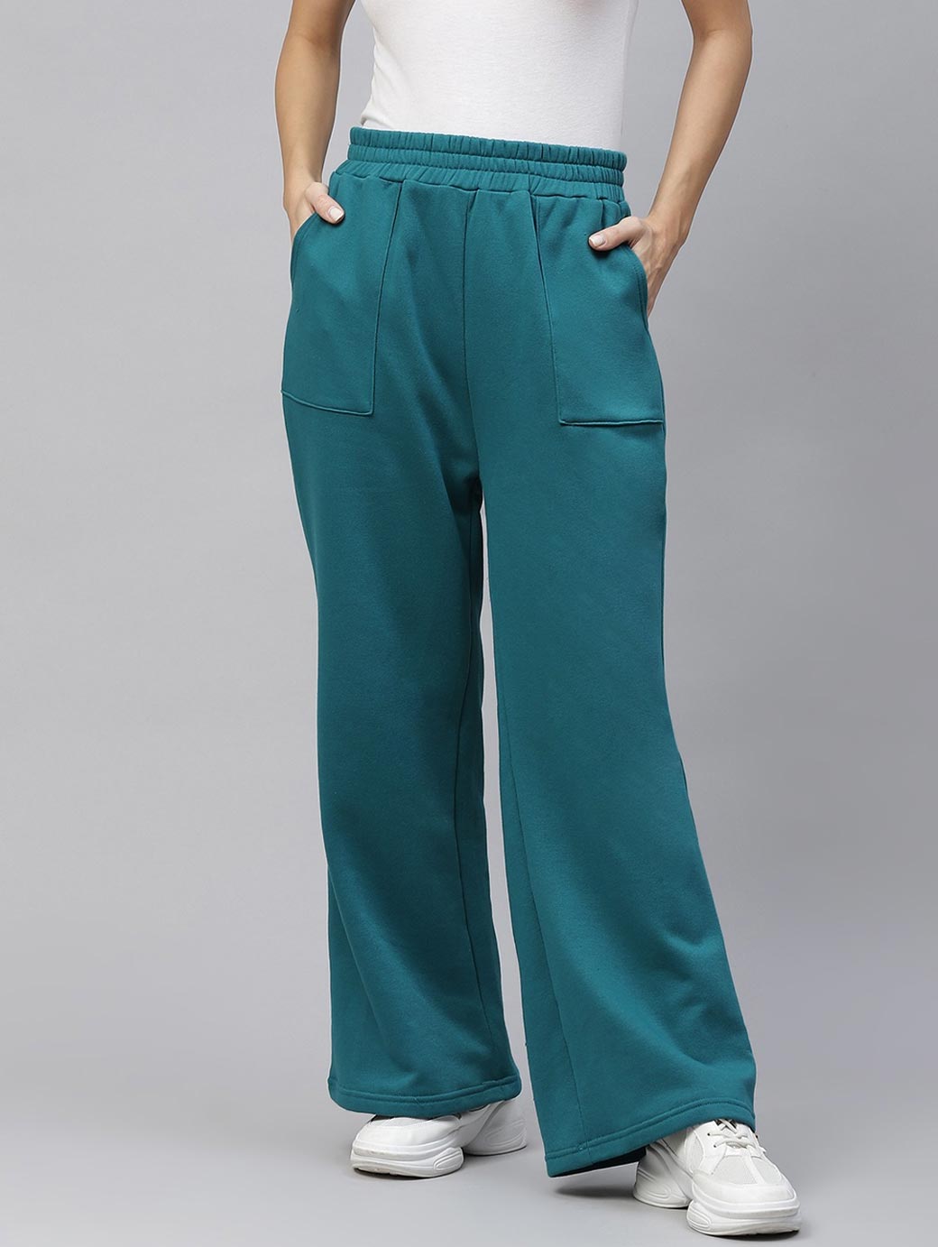 Teal blue solid track pants, has an elasticated waistband with slip-on closure and 2 insert pockets